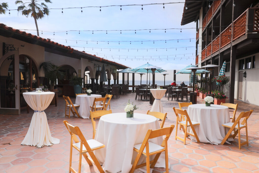 Step into a tropical paradise on our outdoor ocean-view patio. Perfect for larger events of up to 180 guests, this versatile space showcases stunning ocean vistas.